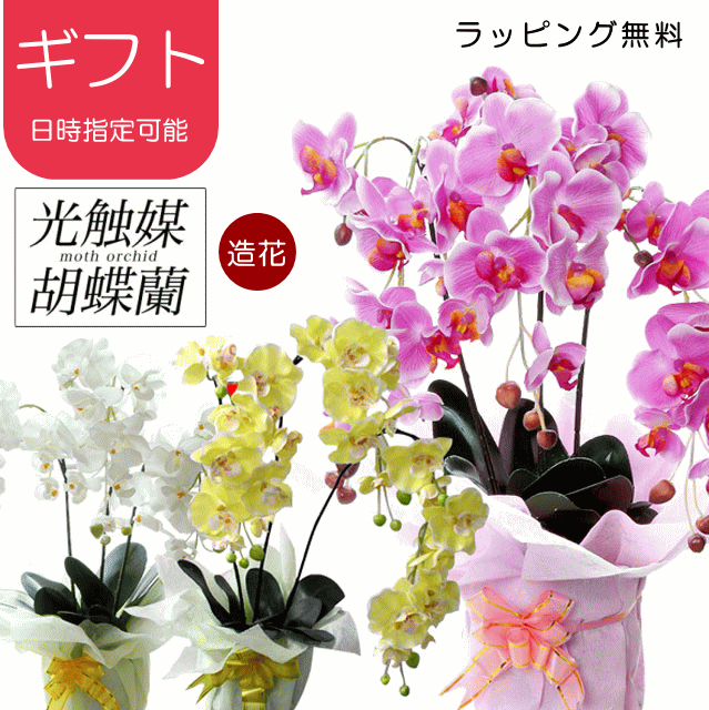 光の力で脱臭・殺菌・抗菌・有害物質除去! 見た目もキレイでインテリアにも最適! 安全な物質で効果は半永久的! 光触媒 胡蝶蘭3本立の詳細 サイズ (約)30×30×55cm 箱サイズ (約)14.5×14.5×45cm 重量 (約)850g 材質 PE,絹、磁器 特徴 ● 光触媒コーティングされた本商品に日光または蛍光灯の光が当たり、脱臭・殺菌・抗菌・有害物質除去なども効果をもたらし、空気をキレイにします。