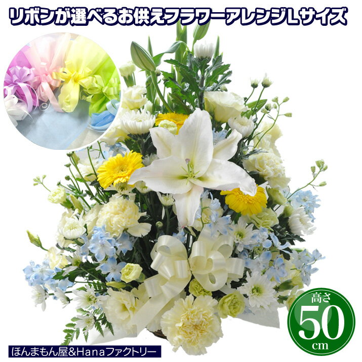 商品名 リボン入りお供えフラワーアレンジメントL この商品の特徴 リボンが入ってふんわりボリュームアップ! 季節のお花をたっぷり使い、リボンとユリが必ず入った、満足なお供えアレンジになります。 リボンのお色を選んで頂くだけで、それに合わせてその日一番新鮮なお花でアレンジメントを作成いたします。 キリスト教やアレルギーなどにも対応。入れてはいけないお花がある場合はお知らせくださいませ。 また、ご自宅...