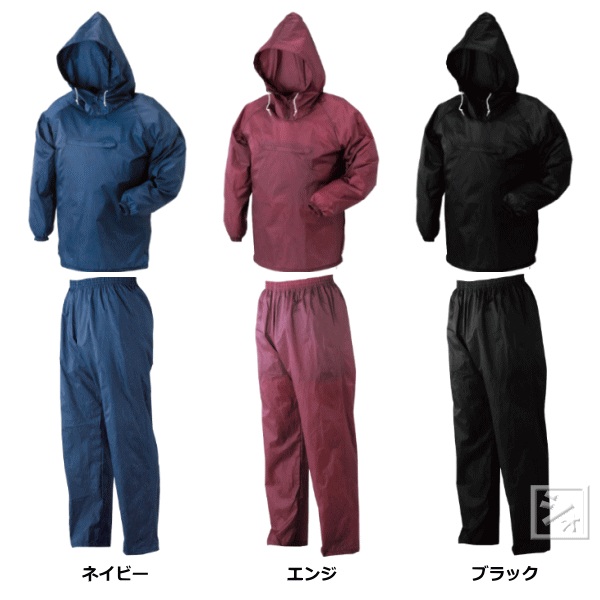 商 品 説 明 素材 ポリエステル100% サイズ M L 2L 3L ※サイズ表をご参照ください。 上衣Mサイズ:(平置き実寸)身巾(約)55cm、着丈(約)57cm 上衣Lサイズ:(平置き実寸)身巾(約)57cm、着丈(約)59cm カラー ネイビー エンジ ブラック 特長 ●撥水加工。(生地表面に撥水加工を施し、水をはじき、防風性にも優れています。) ●ヤッケ・ズボン(上下)に外ポケット付。...