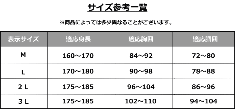 商 品 説 明 素材 ポリエステル100% サイズ(cm) M:適応身長160-170、適応胸囲84-92、(平置き実寸:身巾(約)55cm、着丈(約)57cm) L:適応身長170-180、適応胸囲90-98、(平置き実寸:身巾(約)57cm、着丈(約)59cm) 2L:適応身長175-185、適応胸囲96-104 3L:適応身長175-185、適応胸囲102-110 カラー ネイビー エンジ ...