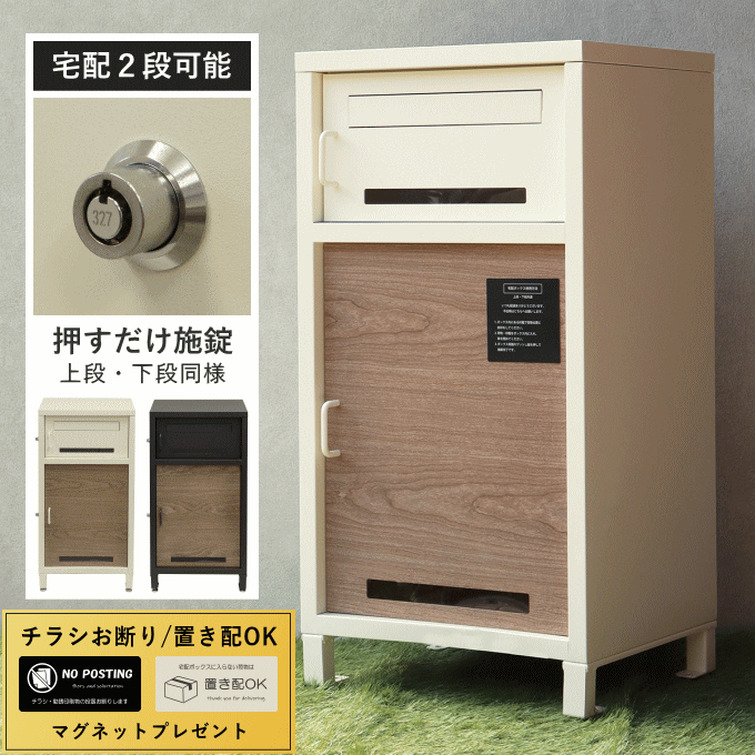宅配ボックス ポスト一体型宅配ボックス【Lauro-ラウロ-】の解説 郵便物、宅配物どちらも不在時に、荷物を受け取れるポスト付き宅配ボックス。忙しいあなたや、配達の方にも優しい商品です。押すだけで施錠できるプッシュ錠で防犯性が高いです。高級感のある郵便受けが個性ある玄関を演出する宅配BOXです。上段の郵便投函口は、ゆうパケットポストや、ネコポスが投函可能です。 【上段宅配使用可能】 印鑑ケースは2...