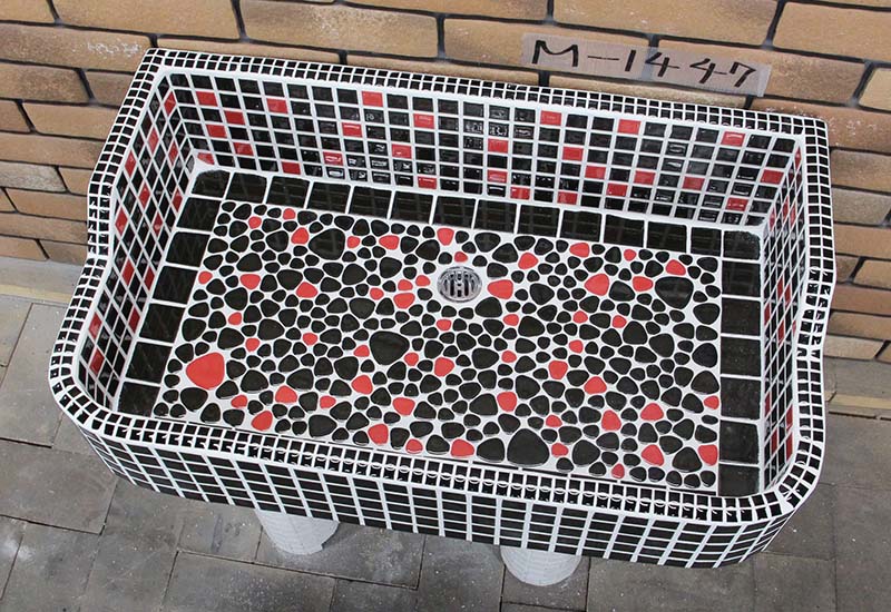 ガーデンシンク タイル 流し台 昭和レトロ モザイクタイル張り MサイズM-1405 手作りガーデンシンク タイル流し台 エクステリア お洒落 老人ホームなどにも大好評です