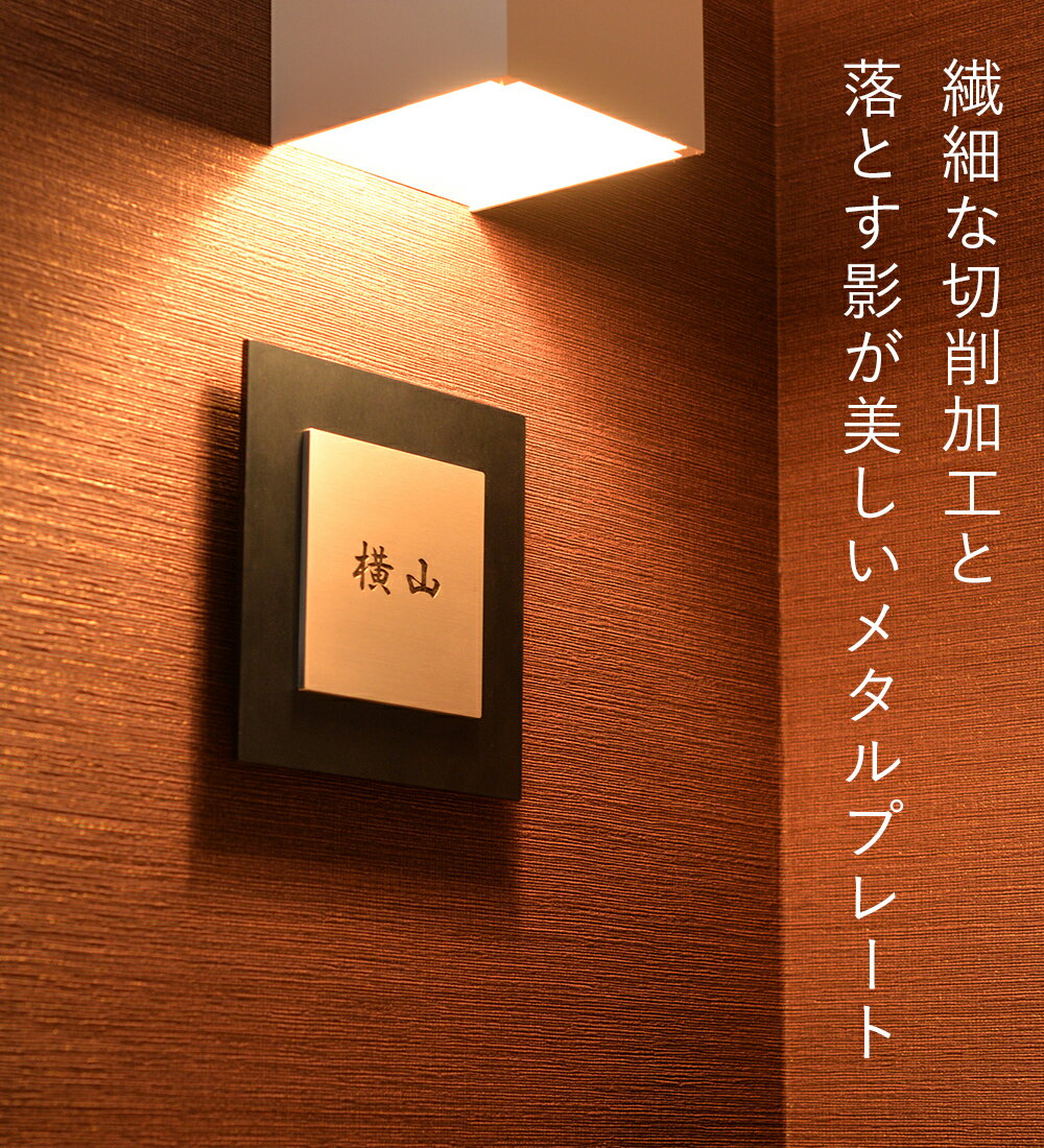 人気の正方形表札。重厚感のあるメタル素材に大切なお名前を丁寧に彫刻します。