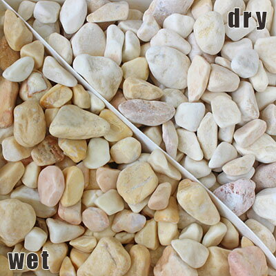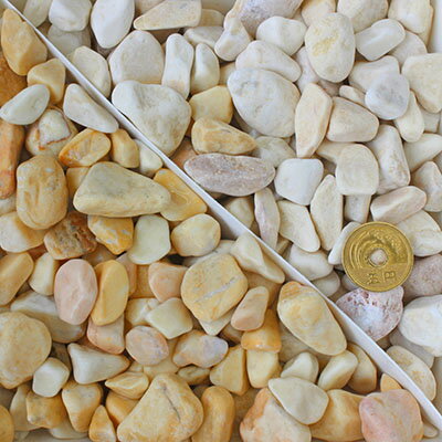 敷くだけでおしゃれなお庭を演出♪ 淡い黄色の大理石玉石(玉砂利)です。洋風ガーデンの敷砂利や、駐車場のスリット・目地に敷いても可愛い小粒サイズです!
