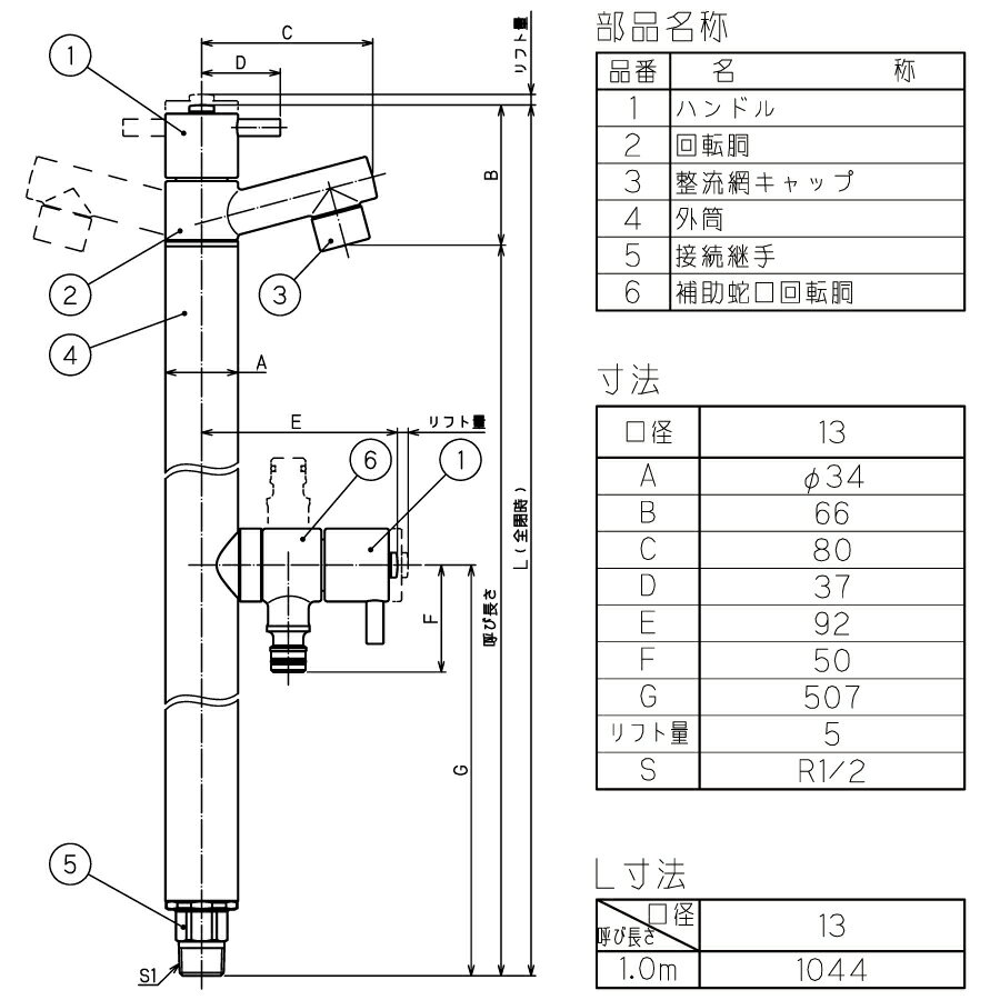 サイズφ34×H1041mm 2.3kg (ヘアラインは2.8kg)仕様二口水栓柱/蛇口一体型材質[外筒]アルミ (ヘアラインはステンレス) [立ち上がり管]ステンレス [蛇口部]銅合金 仕上げ[外筒]焼付塗装 (ブラックはアルマイト処理、ヘアラインはステンレスヘアライン処理) [蛇口部]ニッケルクロムメッキ使用上の注意点・蛇口一体型 (補助蛇口は、ホースアダプター一体型) ・補助蛇口の位置は現場...