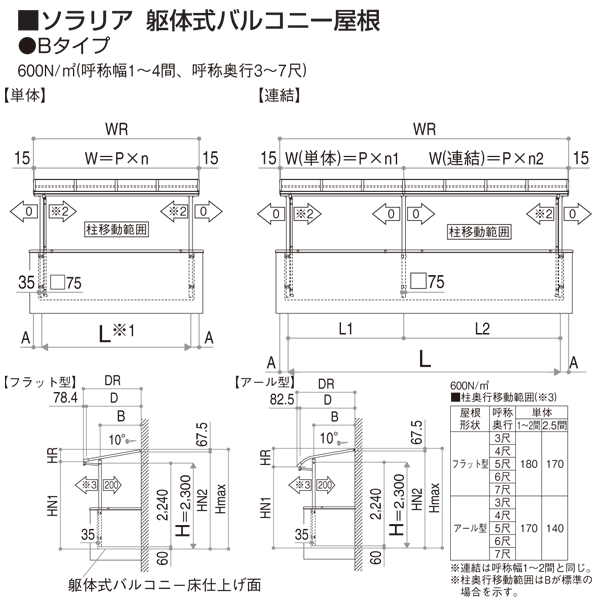 躯体式バルコニー屋根 Bタイプ ソラリア アール型 2.0間4尺 部品箱付 ポリカ 2階 テラス ベランダ